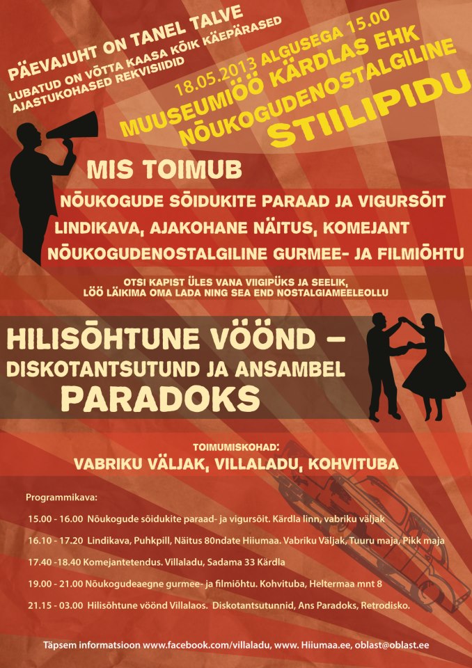 Kuna, hiiumaalt ilmselt nii palju 80ndate masinaid kokku ei saa, et vastav olustik/meeleolu luua, oleks tore, kui tuleks ka abijõudu.