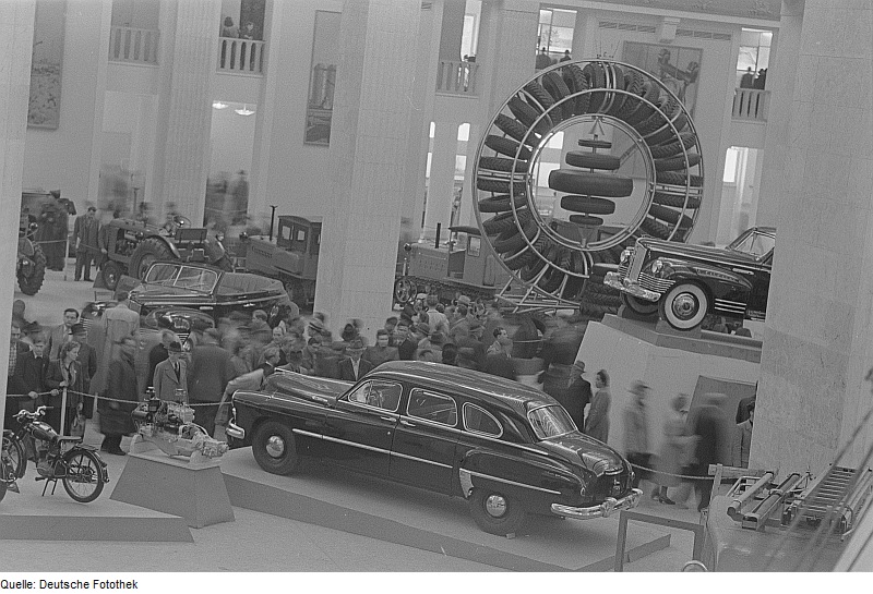 Saksamaal, kaunis linnakeses nimega Leipzig, on ajast-aega korraldatud kaubandusnäituseid, nn messe. Küll algul keskaegseid, küll hiljem imperiaalseid, küll kevadisi, küll sügisesi, küll raamatute- ja küll muid. Pärast Leipzigi jäämist sõjajärgselt ida-tsooni, jätkusid õnneks nii messid kui ka uudistoodete esitlus mõlemalt poolt piiri. Kiiduväärselt on 1950-te alguses tuntud saksa fotograafid Rössingid mõnda neist messidest ka üles võtnud, ja Bundesarhiiv säilitanud. Ja mida tõi siis näitusele üks sõjavõitja riik - traktoreid, jalgrattaid, ja.... loomulikult Zim'e.