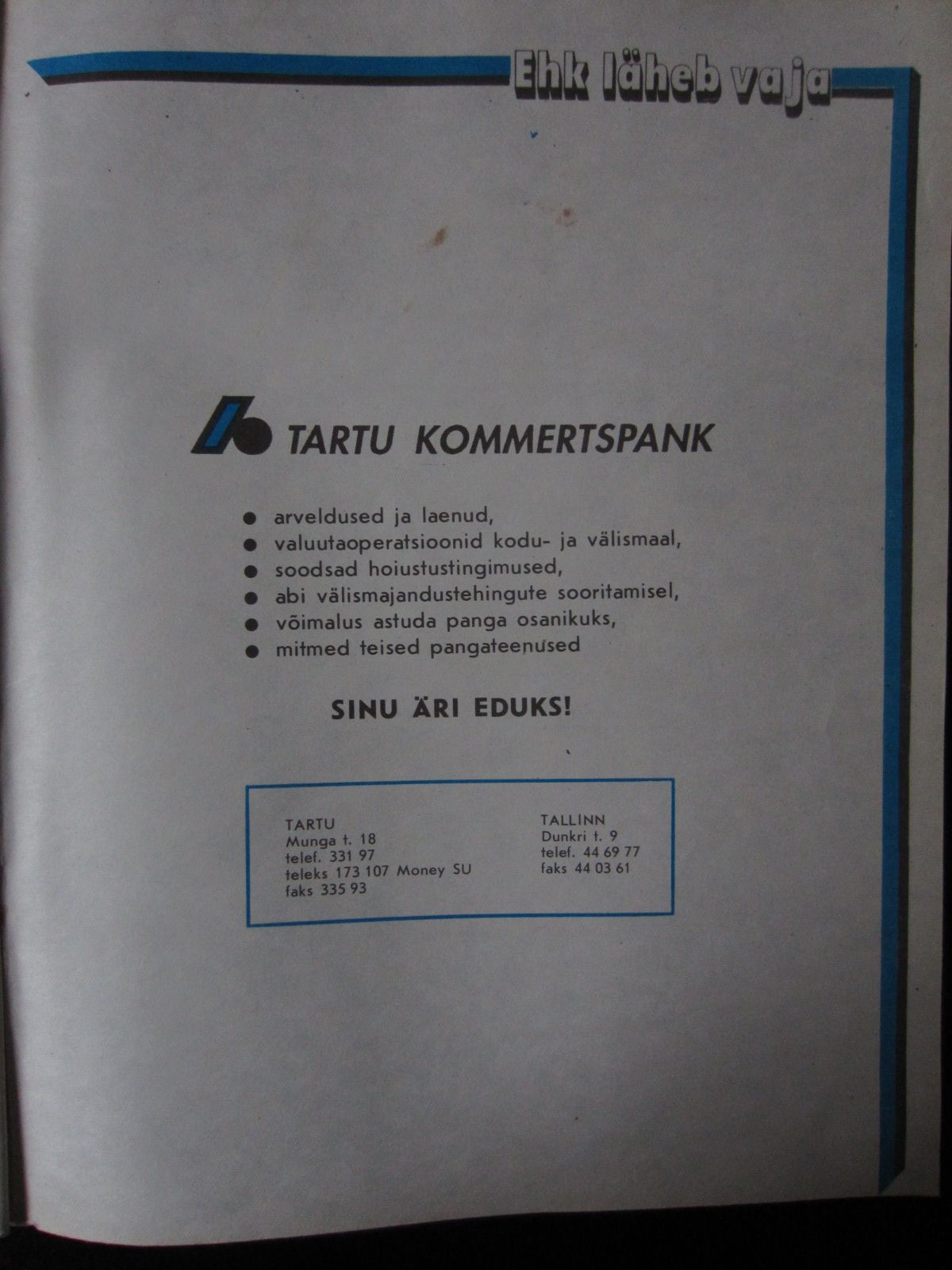 "1992 aasta kevadel umbes kuu aega enne rahareformi maksis aktsiaselts Estre mulle minu aktsiate pealt dividende. Läksin väikese kilekotiga duvidendidele Estre kontorisse järele, kuid mulle laoti lauale terve mägi rublapakke, mahu poolest umbes poolteist suure kartulikoti jagu rahakupüüre. Et mul ei olnud seda rahamäge kuhugi kaasaviimiseks panna, siis anti mulle üks suur paberikott kaasa, kuhu see raha vaevu sisse ära mahtus. Minu eesmärk oli osta selle raha eest Tartu Kommertspanga aktsiaid ehk osakuid, sest see oli ainukene võimalus minu olukorras, kuidas seda raha edaspidise infatsiooni ja riisumise eest päästa püüda."