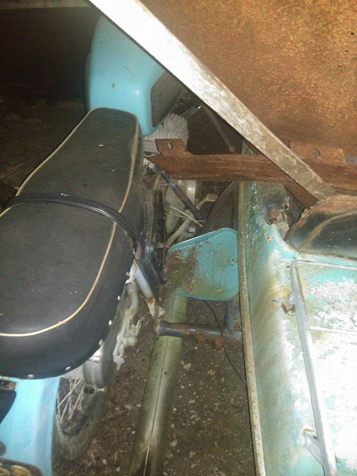 Meil on vana kolhoos alles, mille nimi on vahetatud aga seal käib ikka keskmiselt aktiivne töö. Kolhoosi taga on vanad traktorid, kombainid, kardaanid ja muud vanarauda, mis lihtsalt seisab seal. Kuna tuli huvi, läksin vaatama, mis seal täpselt on, siis leidsin ühe kasti seest IZ Jupiter 4'ja külgkorviga*, helesinist värvi. Masin on veidi värvikahjustusi saanud, kuna kasti katus on sisse kukkunud, mis pole raske, kuid kriimustas värvi ära. Masin on üleni tolmune ja paistab suht korras olevat.