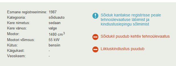 Esimene: Sõiduk kantakse registrisse peale tehnoülevaatuse läbimist ja kindlustuslepingu sõlmimist. . Ja teine: Sõiduk on registrist ajutiselt kustutatud kuni 28.09.2016.