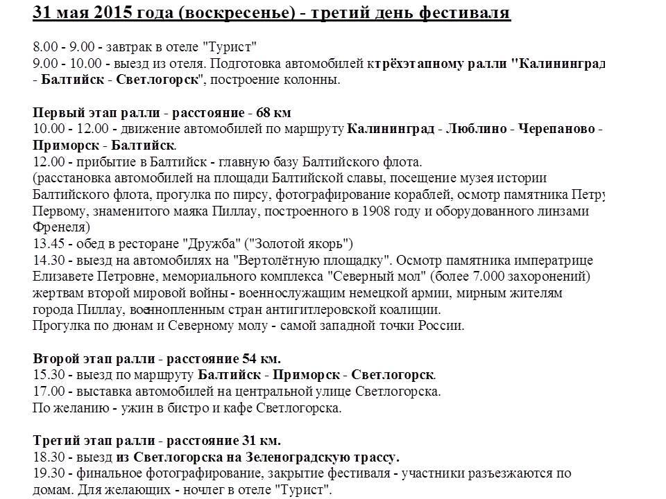 ) kui eelmisel aastal. Osalemistingimused samad. Linnavalitsus teeb avalduse tasuta viisade väljastamiseks. Hotell jääb samaks. Osalema oodatakse autosid (v.a nõukogude päritolu) mille väljalaskeaasta on varem kui 1970, aga vaadatakse läbi kõik sooviavaldused ja nooremate kohta tehakse personaalne otsus.Kontakt: