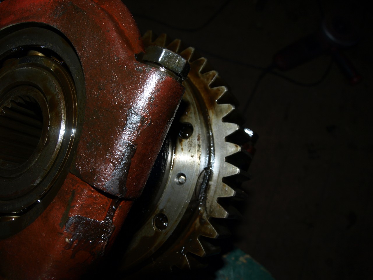 Täna võtsin lahti tagasilla reduktori, et näha, millest on suur lõtk tingitud. Ja lõpuks ei saanudki aru, laagrid on korras ja hammasrataste hambumine tihke. Väntvõllipoolse võlli peal, mis on kardaaniga risti ja kus on 2 hammasratast, on ühel teise suhtes lõtk, aga sellega ei oska midagi ette võtta- jääb nii nagu on. Rohkem segadust aga tekitas üks tift, mis oli välja tulnud ja vastu hammasratast ka kõveraks väändunud. Ma ei saa aru, et mis otstarve sellel on ja kuidas see seal sees peaks üldse püsima. See pulk, mis diferentsiaalist läbi jookseb ja mille otsas on arvatavasti satelliidid, on ainuke asi mida sellel tiftil kinni hoida on, aga see pulk e. satelliitide võll, on pandud sinna enne suurt hammasratast ja välja see sealt põhimõtteliselt tulla ei saa, kuna on poolenisti selle hammasratta all: