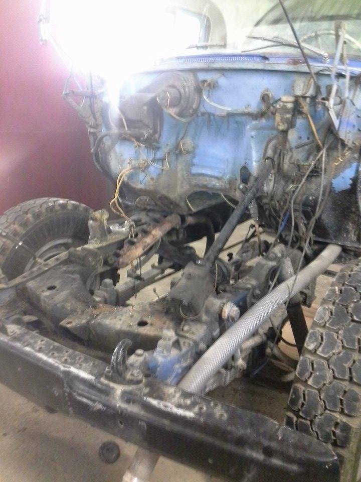 Kui päris algusese minna siis oli meil töökoja nurgas vana gaz 53 mis vedeles, sai uuritud mis viga on , käima läks, kuigi plärtsus ega ei töödanud õieti.Siis sai surved ära mõõdetud 4 silindris oli surve 8-10 bar vahel aga 4 silindrist ühes oli 3 bar ja teises kolme oli midagi 6 bar kanti. Seega polnud ime miks mootor õieti ei töödanud. Sai uuritud ka mootori hindasid aga hinnad olid ikka päris rajud , ega õigeti 53 mootorit polnud saada ka . Siis üheskoos sai otsustatud, et mis ikka ... Võtame mootori ette ja teeme korda! Mõeldud tehtud. Sai otsitud mootoreid kui ka varuosi, Pärnus saada ei olnud ,Aga osad saime kohast nimega tehnikatugi. Toodud said hülsid, rõngad,kolvid,mootorithendid. Esimene probleem oli see et üks plokikaan oli nii kinni ,et ei saanud kätte sai keevitatud mutter peale aga tikkpolt otsustas et läheb puruks, seega hetkel võtame mootori maha kuna seal ei ole eriti lihtne puurida kuna maru kitsas on.. Nvn kui remontida siis juba korralikult. Kardaanid asjad on küljest ,nüüd veel käigukast küljest ja mootorikäpad lahti ja saabki mootori maha tõsta.