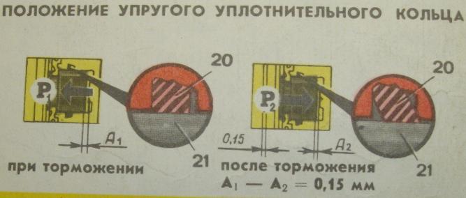 Kolvi tõmbab tagasi see rõngastihend. Profiil on ristkülik ja piduri rakendumisel peab see deformeeruma nihkega. piduri lahtilaskmisel nihkes tihend tagastab kolvi mingi millimeetri murdosa võrra. Kui see tihend jäi vana, siis võibolla on ta kulunud ja ei deformeeru piduri rakendumisel. See on VAZ 2101 pealt kogemus kui pildiraamat asja nii seletas. Uuematest ei tea ma midagi aga miks peaks tehnoloogia muudetud olema. Vahet pole kas on üks või kaks silindrit-kolbi.