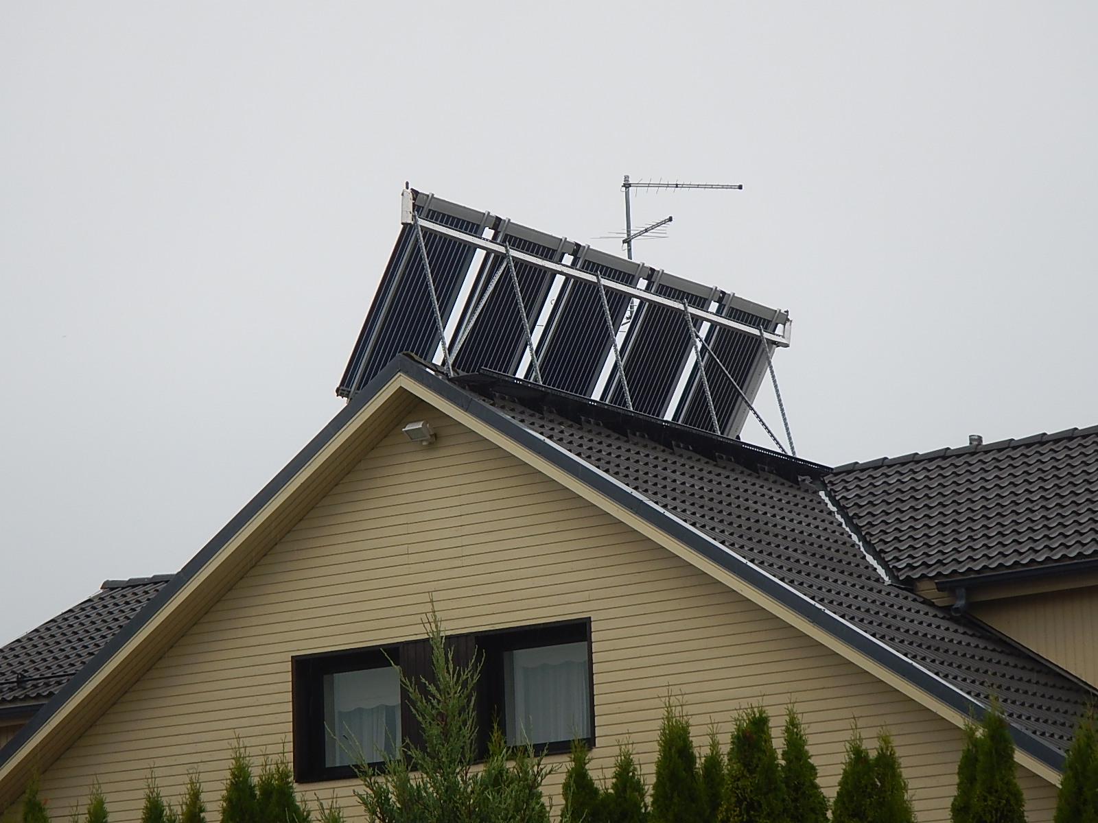 Ei kogune raskeid vett täis lumehangesid paneelide taha ja naabrite hekk, õunapuud ja maja katus ei varja madalat päikest. Muidugi on probleemiks tormituuled, sest oma katusehari ei varja.