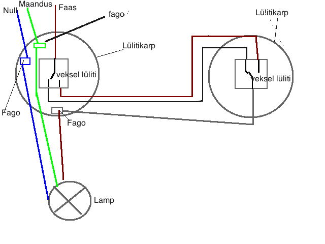 (21-12-2015, 14:36 PM)maisalup Kirjutas:  See on nüüd kahe veksli ühendus kui on vekslis üks lüliti.  Kui on topelt lülititega veksel, siis läheb juhtmeid poole rohkem tarvis.  Wink