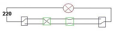 Ja selle skeemi järgi saab lülituskohti olla ainult kaks. Suurema lülitite arvuga skeemi väljamõtlemine jäägu lugejale koduseks ülesandeks.