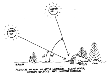 1. Päikesekollektori asend võiks olla muudetav / kallutatav, suvel kõrge päikesega ca +-45 kraadi, talvel võib olla ka täiesti vertikaalselt / püsti. Klaasist hoone seina puhul (kalle ei ole muudetav) kasutegur talvel suurem, suvel väiksem.