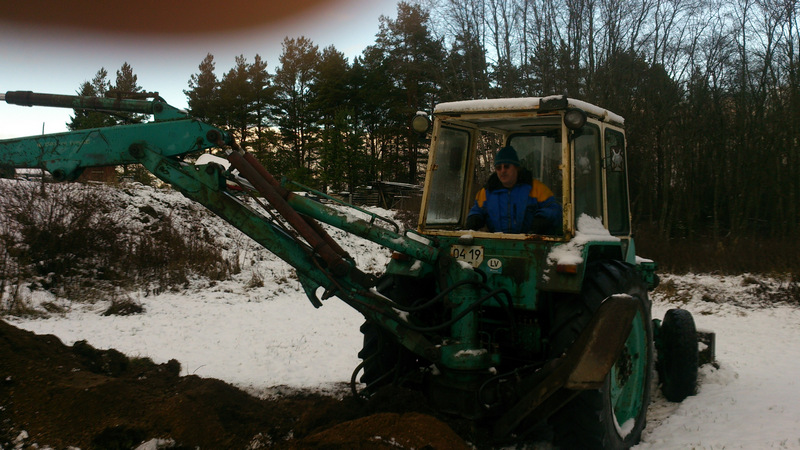 Et nüüd kõik ausalt ära rääkida siis peab alustama sellest, et sai kolitud metsa ja tuli kole tahtmine omale veesilm kaevata. Algul oli mõte ,et tellib kopa ja tehtud ta ongi kuid teema arenduse käigus selgus ,et kaevamise/lükkamise töid tekib nii palju ja logistika oleks keeruliseks ja kalliks läinud. Siis mõtlesin ,et kuna kõik näpud pöidlad ei ole võiks proovida ise teha, kui keeruline see ikka olla saab. Mõeldud tehtud kolasin paar kuud soove ja börse läbi ja leitsingi mõistliku hinnaga Jumzi käisin kohal vaatasin üle palju oskasin, eks ta põrsas kotis ost oli kuna käima panna ei saanud oli 2aastat seisnud, enamvähem komplektne oli. Masin siis Jumz EO2621B-2 aastast 88 töötunde kellal 2500 ,peale selle kui olin kõikvõimalikest kohtadest vee välja lasknud, kütuse sisse valanud, õlid lisanud/kontrollinud, mootorit käsitsi ringi ajanud ja benapaagi kraani ära puhastanud hakkasin käivitama. Käivitus mootor käivitus esimesel katsel suurt tuli ikka mingi 5mintsa joristada enne kui kolme pütaga käima jäi iseseisvalt kui siis mõne minuti möödudes viimane silinder järgi tuli töötas ilusti. Augu kaevasin maakera sisse ära hüdraulika töötab ilusti. Ja nüüd siis selline jama vaja kallakust üles saada edaspidi sureb poole mäepeal välja tagurpidi kraabib sisse ja siis andis suure õlipumba survepoolsetoru kinnitus tihend saba, huvitav kas selle kaane saab sealt kätte ilma pumpa maha võtmata, eks homme proovin.