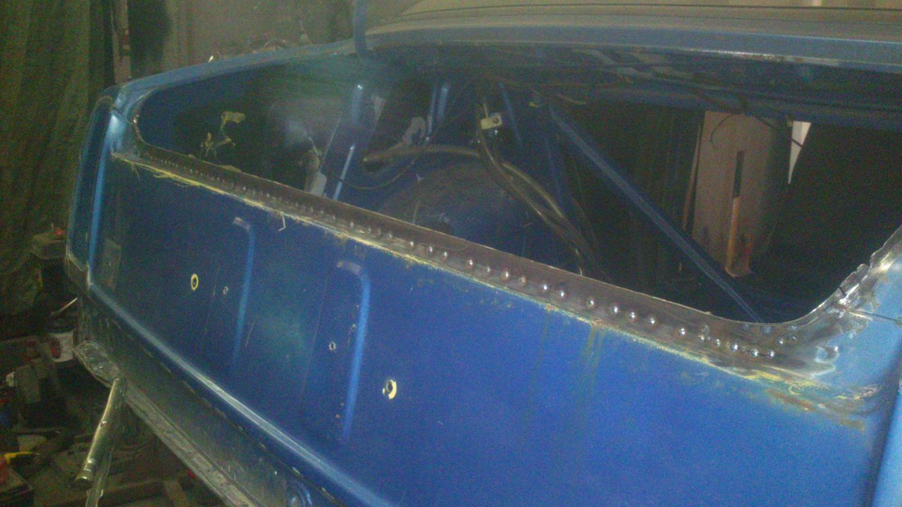 Lõpetatud sai vasak tagumine nurk(tiiva ots ja mingi väike talajupp). Seejärel kogu kole teisele poole autot ja sama asi otsast peale. Nüüd tiivakaar kinni punktitud. Tiiva esimene nurk puhtaks lõigatud ning kõik sisemised ja välimised kihid värskendatud. Korra kiilus tiivakaarega juhe kokku, siis tegin vahelduseks pagasnikule uue tihendiserva(originaal lahkus koos tihendiga Big Grin). See ka kinni punktitud ja ootab keevitamist. Mõned hullemad kohad parandan veel ära seda tihendiserva külgedelt. Klaasi poolse osa teeb kunagi hiljem kui klaas eest ära on.