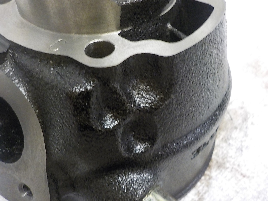 Nagu näha, on gaaside küljekanalid ebavördsed, sest sama mootorit kasutaval teisel masinal (mingi roller) jäi silinder millelegi pumbale ette ja siis tehti sinna lohud sisse:
