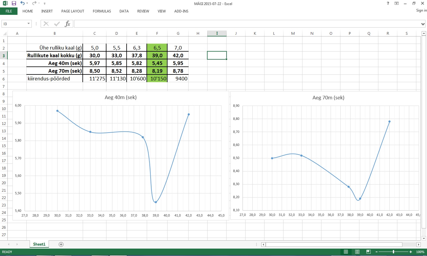 (24-05-2016, 13:11 PM)Janka Kirjutas: Eksel küll, ma saan aru jah, et toksid tulemused sisse ja tema arvutab, aga kuidas algandmed, ehk siis kiirendused näiteks, mõõdetu on? Ega ometi stopperiga?