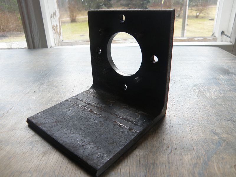 Siis mõtlesin, et kas ei saaks laagrit pumba enda laagrile lähemale nihutada. Ja kas ei võiks laagreid olla koguni kaks. Siis torkas pähe selline laagripuki toorik (see juba peale mudimist/modimist, algseisust pilti pole):