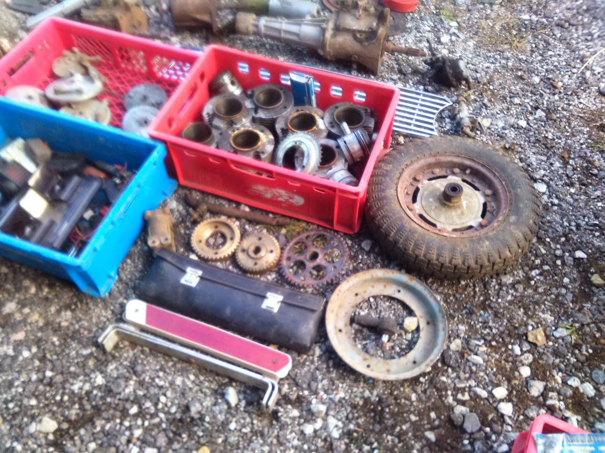 Irbit karter - täiesti korralik karter, mille sisu sai laotud 12V generaatorit toetavasse karterisse. Karteri esimene luuk on pildil mootori peal, see on ainuke lõigutud detail. Sellest mootorist oli tehtud mingi aiatraktorilaadne toode - piltidel on näha ka vene emmilise väntvõlli otsa istuv hammasvööga hooratas, sidurikoda, vaheplaat, siduriketas/surveketas. läinud