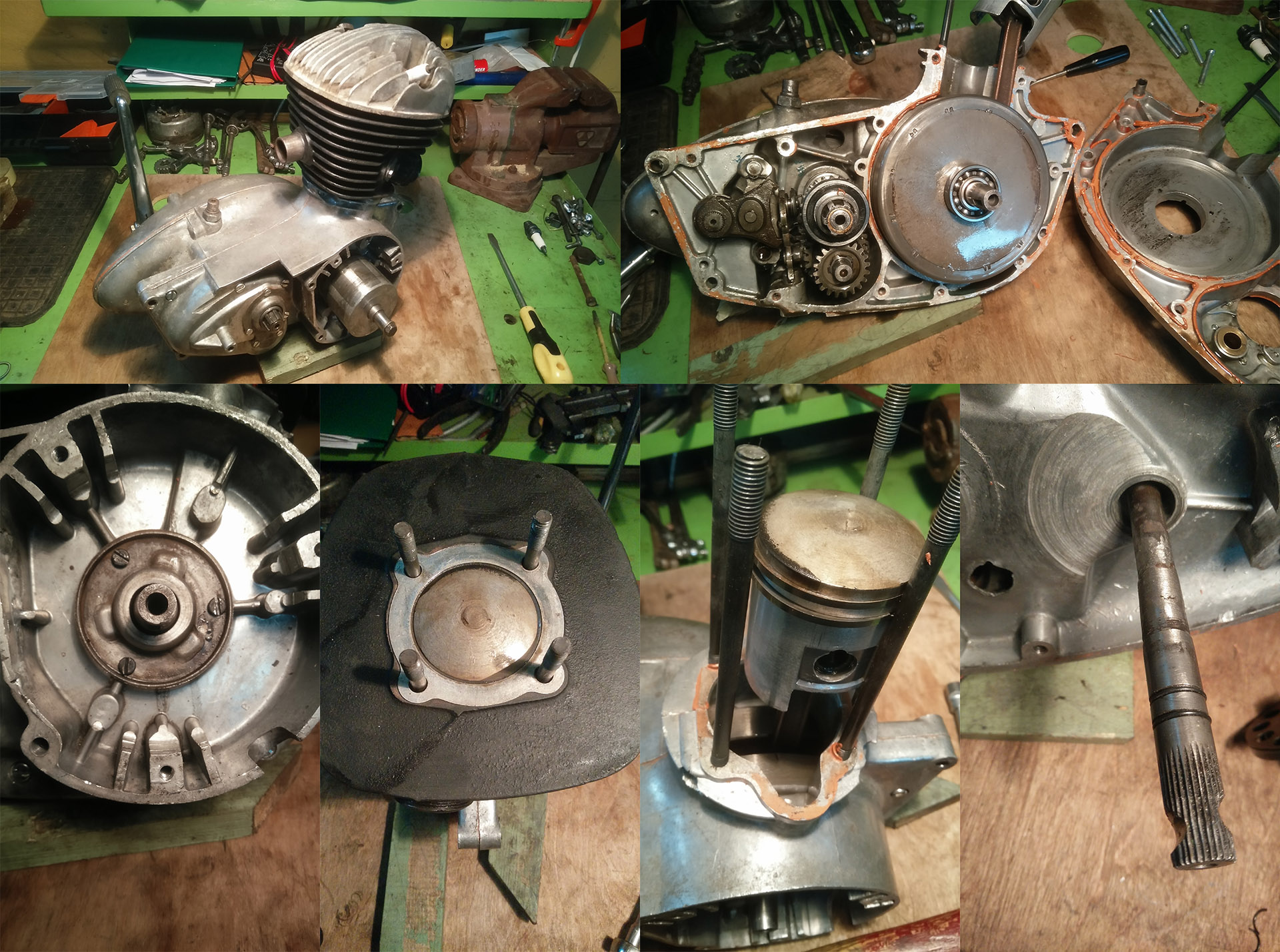 Mõned jupid on kasutud - st kas katki või väga kulunud. On ka suurema mootori juppe (võib olla K175 omasid...) nt üks käigukasti alumine võll + hammakas, sidurikorv ja selle sisu...