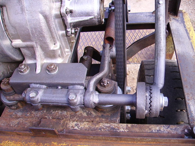 Kolahunnikust vaatas vastu T-40 sidurikahvel koos võlliga. Lõikasin kahvlil "nagad" maha ja keevitasin vinkli külge. Mis omakorda sai kinnitatud mootorikinnituspoltide alla. Sidurivõllil oleva hoova paine sobis ideaalselt pingutusvedru tõmbama.