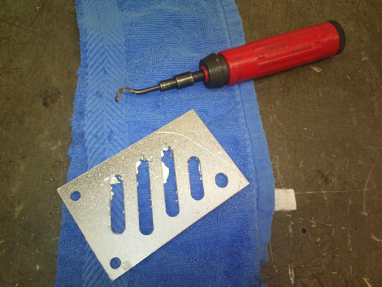 Märkenöelaga (milleks oli teritatud nöelpüstoli nöel) sai kinnituse kuju metallile joonistatud ja vöis löikama hakata.