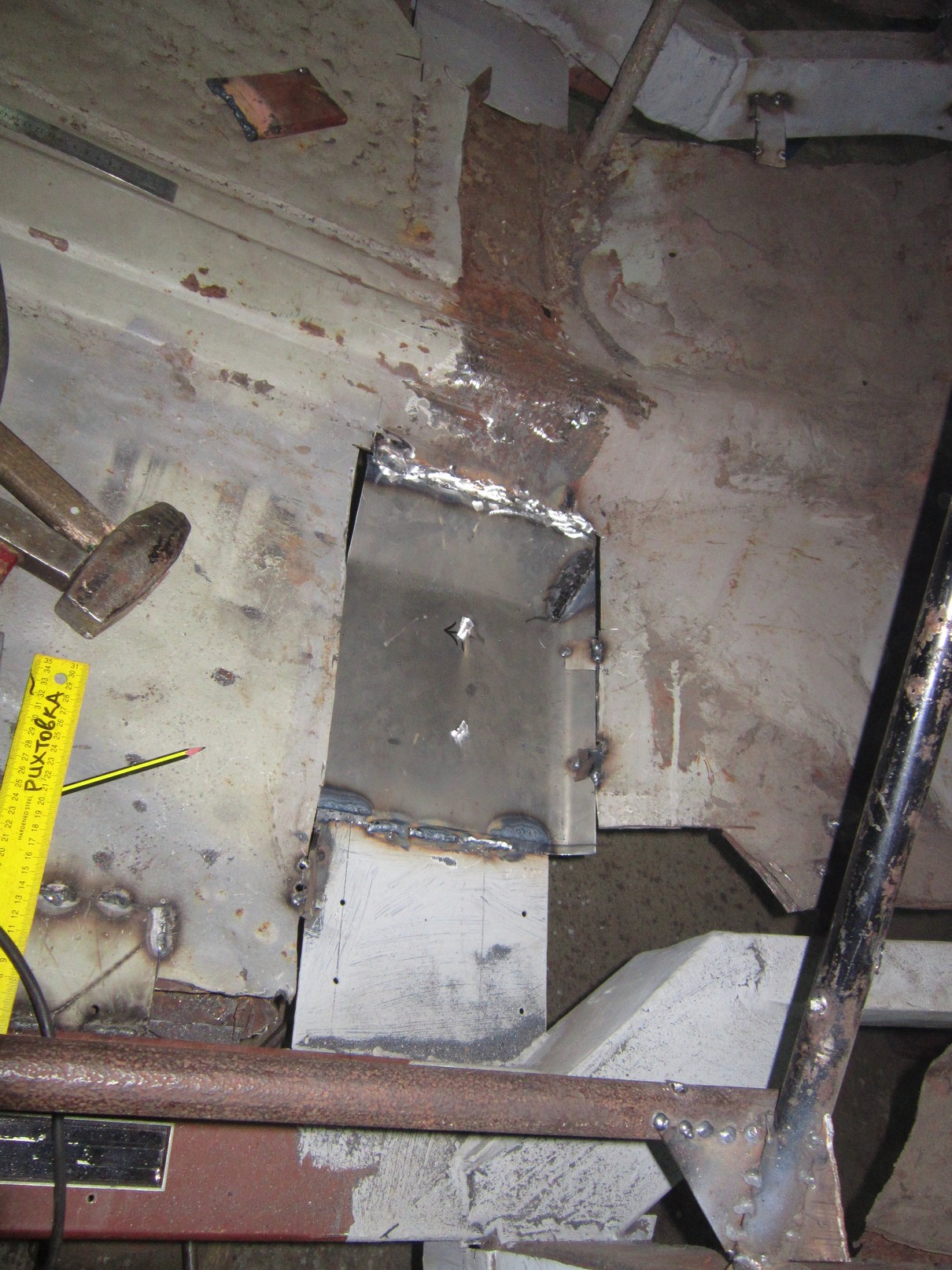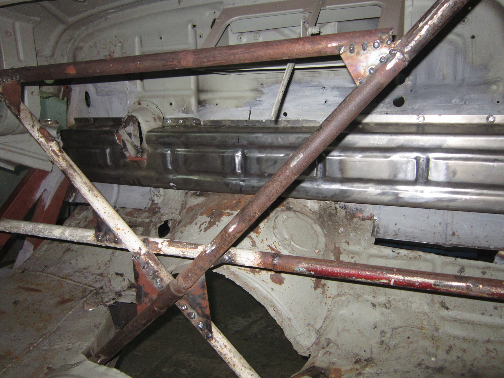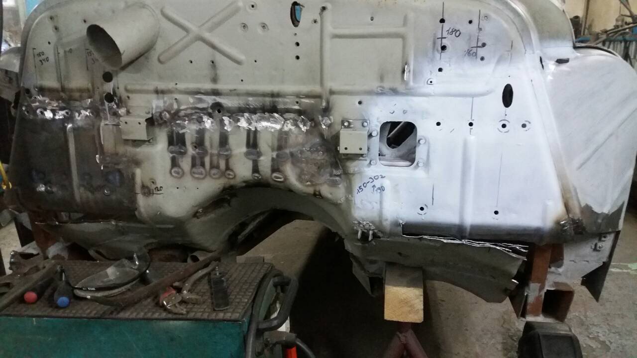 See pagasniku põhi tundub mulle väga imelik, kas oligi selline või on meistrid sinna midagi ajutist leiutanud, et mõõte fikseerida. Tagumine tala kah uus tehtud. Ei tea kas kogu masin läheb uuendusse. Kui esimesi pilte vaadata, siis autost suurt midagi järgi jääda ei tohiks.