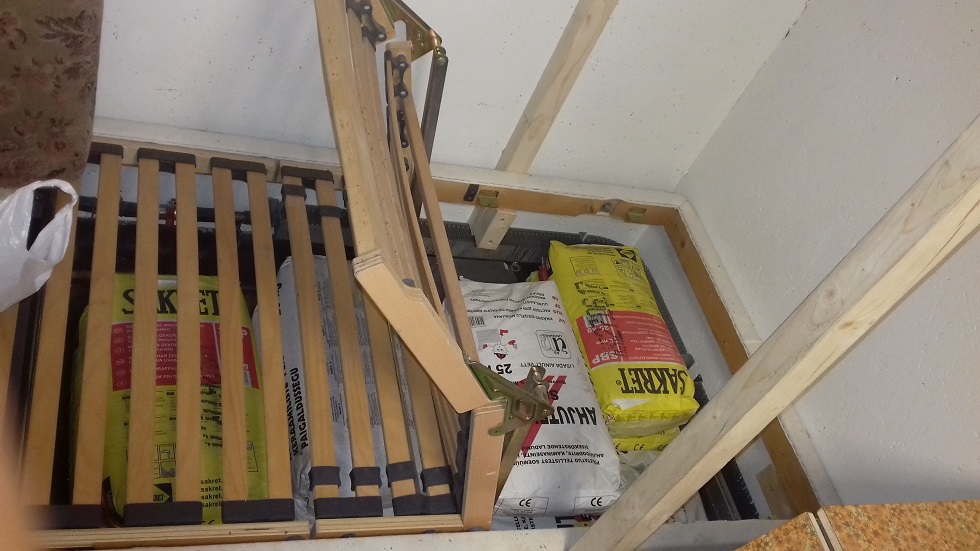 Kaalujaotuse huvides on osa kaupa pandud ajutiselt etteotsa laua ja voodi alla.