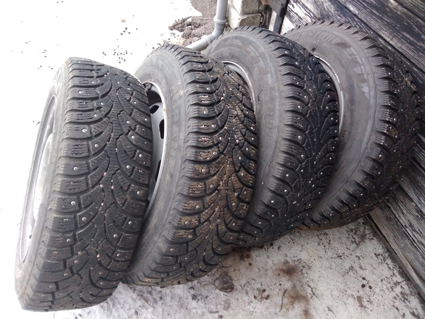 Rehvid siis 175/70 R14 Bridgestone Noranza2, mustrit kõigil 8-9mm, naelad 100% sees ja enamvähem naela kujuga endiselt ikka!