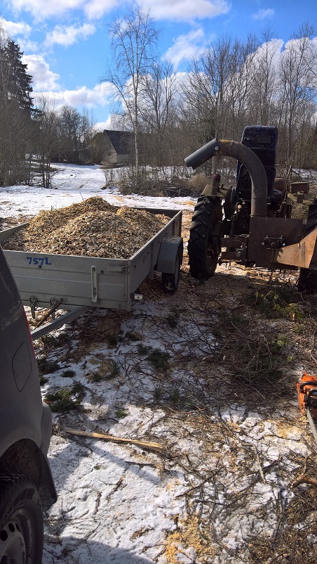 2. Hakke valmistamine (kuna puud olid pikalt välja toodud siis laasimine ka kaasa arvatud) ca 1,5 tundi ja 1,5 kuupmeetrit haket