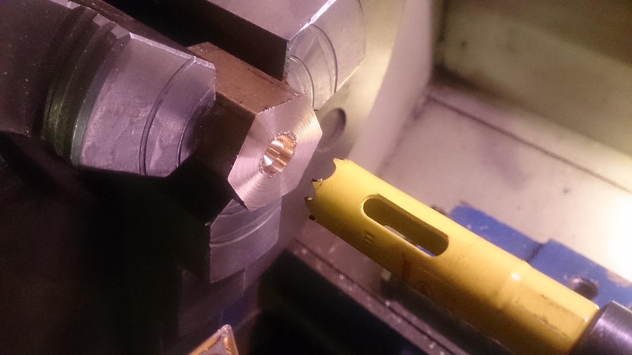 Kuna sama puks tuleb tagasi panna, siis pidin nuputama, kuidas sellele mansett sisse saada. Freesisin siis16mm freesiga tollele süvendi sisse. Loomulikult treipingis freesides tuli see 16,15mm, kuna asjad pole päris tsentris, kuid see 0,15mm ei sega mansetil töötamast.