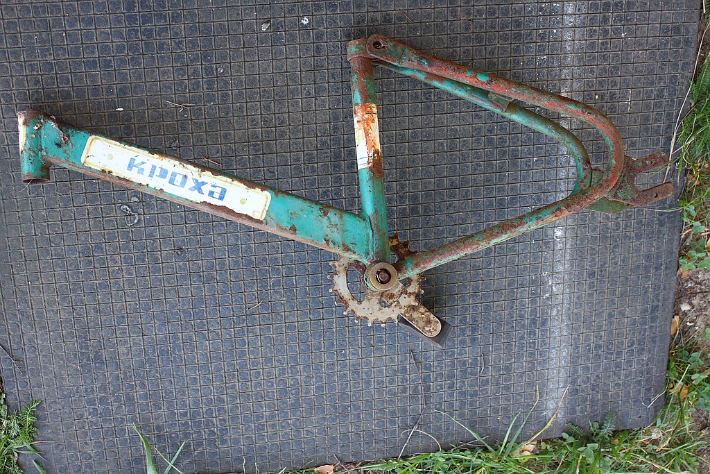 Raam paistab vist sama olema küll. Ees ja keskel embleemid ka samad, sadula all oleval torul on vene lehel oleval see puudu (võibolla ära tulnud). Värv mu omal võis olla roheline kunagi, väljas seismisega on väga ära pleekinud. Ega ma sadula ja käepidemete kohta tegelikult päris kindel ei ole ka, pole nii selgelt mälupildis enam, peaks veel erinevaid variante nägema, äkki siis saab kindlamalt öelda, aga esmalt tuli pähe et käepidemed olid kummist (punane?) ja sadul ka kummikattega (äkki ka punane), aga see mälupilt võib olla ka mõne teise sarnase ratta kohta.