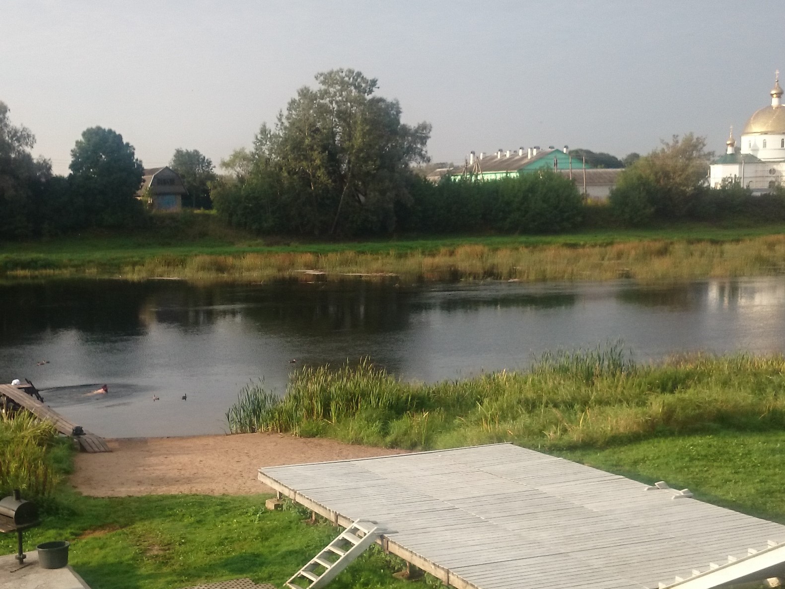 Väljumine pisikeselt kodumaalt läks hästi - vaata soliidses eas vanaautofanaatikut hr Direktoriga kättpidi hüvasti jätmas all pildil - ning pea jõudsime väiksesse Ostrovi linnakesse, kus võimsa etteaste tegid meie ujumisatleedid. Ehkki see kõik toimus kohaliku kiriku valvsa silma all, siis võib siiski uskuda, et jõe teisel kaldal, mahedas tare-tarekeses jäi päris kindlasti mõne pikema patsiga ja hirvesilmadega näitsik seda eesti mehe kehailu veel pikalt järgi ohkama. Tee ääres märkasime ka inimest, kes koristas oma arbuusikioski esist värske saunavihaga, mis oli korraliku täismehe pikkune. Nimetatud Inimene-Saunaviht tegelane jäi ka viimaseks persooniks keda kogu sõidu vältel oli võimalik imetella kui puhtuse eest hoolitsejat nö eraalgatuse korras.
