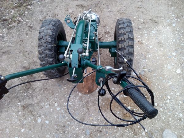 Seega on paremale poolele puuritud puksisuurune auk, kust saab puksi sisse torgata. Originaalkonstruil tuli puks pista käigukangide sisse ja kogu kupatus altpoolt kuvaldaga paika taguda Sad Päriselt kah. Muudetud kangide puhul see enam võimalik ei olnud. Veel sai operaatori käeulatusse toodud õhuklapiga opereerimine: