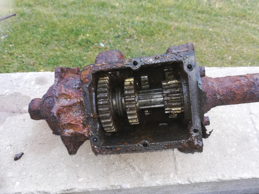 Täna sai siis avapauk tehtud GAZ A taastamisele. Muidugi igasuguseid juppe on üle maailma kokku aetud ja aeg küps reaalselt midagi tegema hakata. Kõigepealt võtsime käsile käigukasti. Parema puudusel tuli mängu panna Taavi poolt maa seest leitud originaalne A kast, mis seal siis 1941 a-st oli lebanud. Siduri korpus küll puru aga see on mul olemas. Kast ise siis selline.