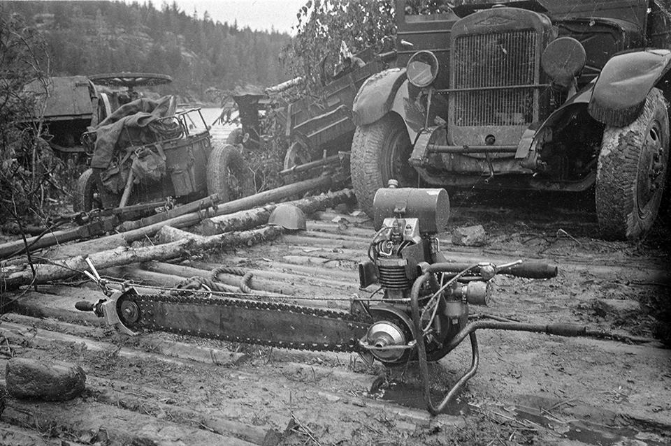 Tundub, et sidur on ketastega ja ehk on käega pingutatav ja hammas-fikseerimisega. teine heebel seal peal-all selle vabastamiseks. Tegu ju 2 mehe saega ja üks kontrollib gaasi ja teine pingutab-vabastab sidurit. ???