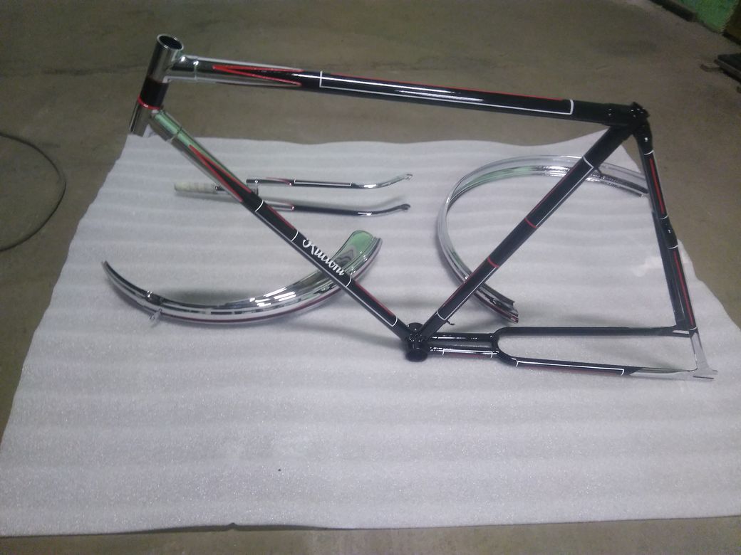 Nüüd siis kõik asjad kroomitud ja saab hakata teipima ja mustaks värvima vajalikke osi. Peale mida siis triibutamine. Ja siis saab hakata kokku panema. Mõnede asjadega on veel natuke nuputamist aga vast midagi mõtleb välja. Tasa ja targu Smile