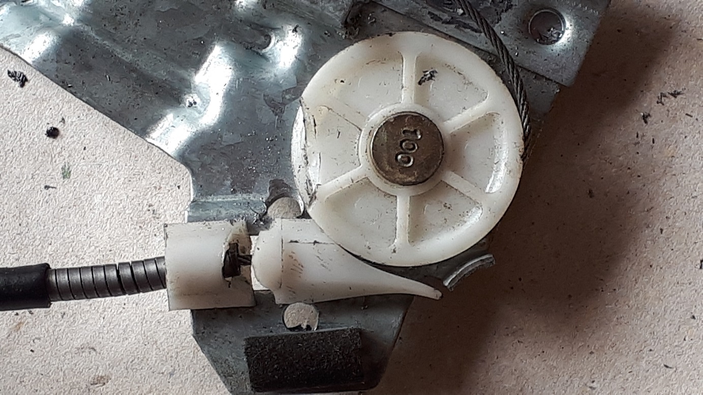 Urgitsesin tõstuki trossisüsteemi välja ja leidsin, et üks plastikvidin oli katki läinud.