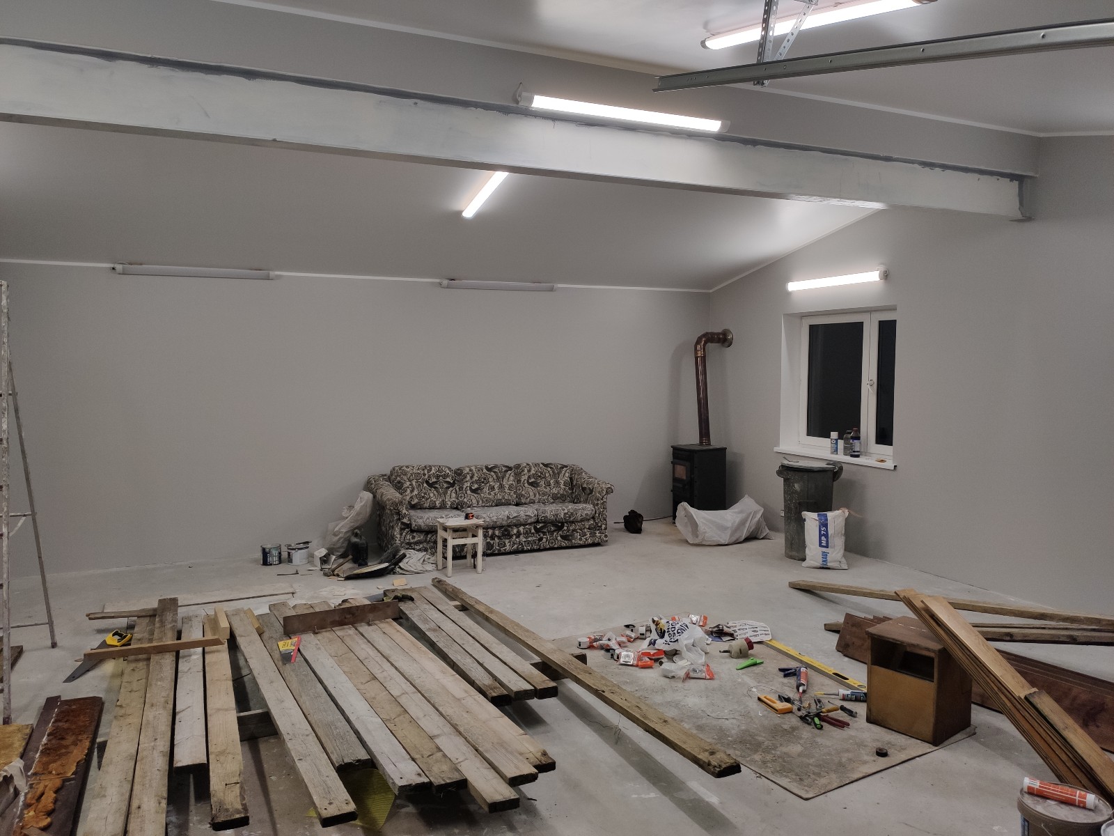 ...ja kas millegi garaažis vajaliku asukoht on mul nimistust puudu: kompressor, keevitus, käi (esialgu ei paigalda), diivan ( Smile ), toolid, kamin, külmvaltspleki tahvlite nurk (pole tihti vaja ja selle jätsin diivani taha. Kerge diivan - on lihtne eest tõsta), prügitünnid, kolanurk, tulekustuti, hari-tolmuimeja-survepesur.