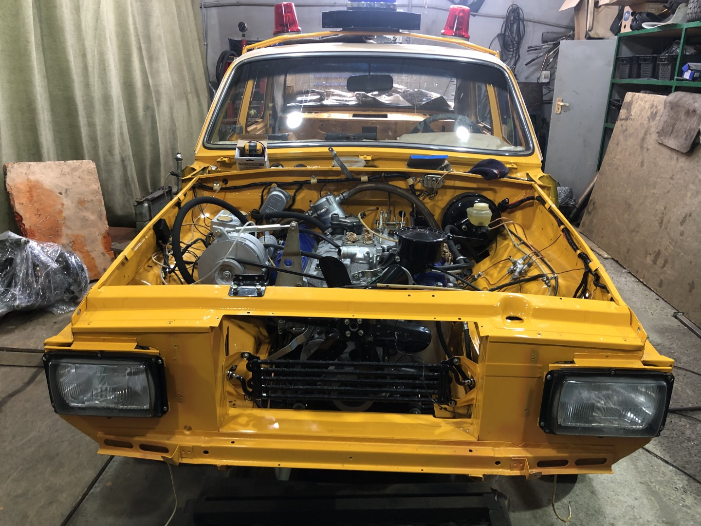 Kõigepealt vastuseks kaasfoorumlasele Mslluik, et kahjuks ei tegele mingite Ameerika hullustega. Lihtsalt need summutid sinna kapotile tuues nullib ära kogu vaeva ja muudab auto väärtusetuks. Muidugi on huvilisi igale tehnika stiilile aga selle jaoks pole vaja sellist mega tööd ette võtta. 8 silindrilise mootori võib peale panna suvalisele paar tuhat maksvale masinale ja muidugi eelistavalt mingi USA V8 mootor, sest Vene ZMZ 505 (Gaz 14) mootor, millel on ühe karbussiavaga ämblik on üliharuldane.