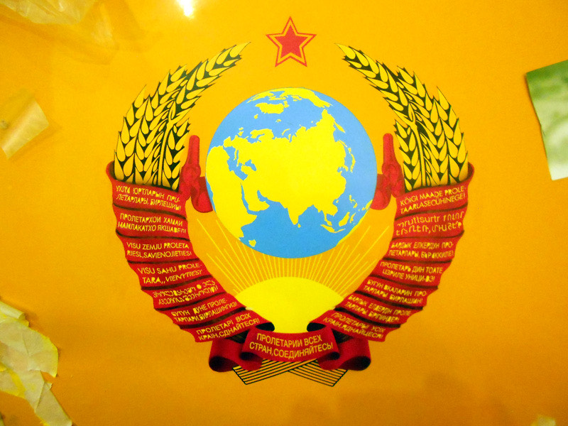 Mind selle vapi juures isegi ei häiriks, kui palju neid tähti seal lintidel loetavad on, aga suures plaanis on sel keskosa praegu ikka jummala puusse. Ilmselt kunstnikule on toodud modelliks ringlusesse lastud "libavapp", kus detailid tugevalt nihkes. Et uksele ei jäädvustuks samuti libavapp, tuleb maakera üle maalida ja paigutada vanasse õigesse asendisse. Jämedalt selgitades siis on õige maakera asend õigel vapil aga on siis selline, kus sirbi tera ots on põhjapoolusel, sirbi käepide aga keset Aafrikat, vasara vars aga jämedalt võttes lahutab Aafrikat ja Euroopat. Nii lihtne see ongi.