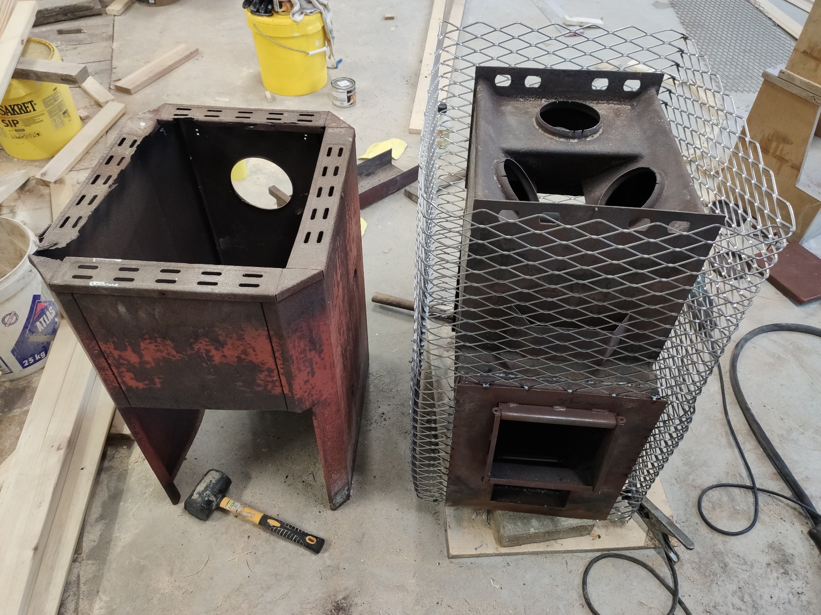 tegin enda omale väikese värskenduse: plekk-kest asendus muuga ja läbi seina kütmine kadus. Paar ukseava ja kolde vahelist tehaseõmblust nõudsid ülekeevitamist, malm-tuharesti lappisin kahest kohast tuimalt MIGga keevitades (see läheb isegi teemasse Smile saab näha, kaua see rest koos püsib)