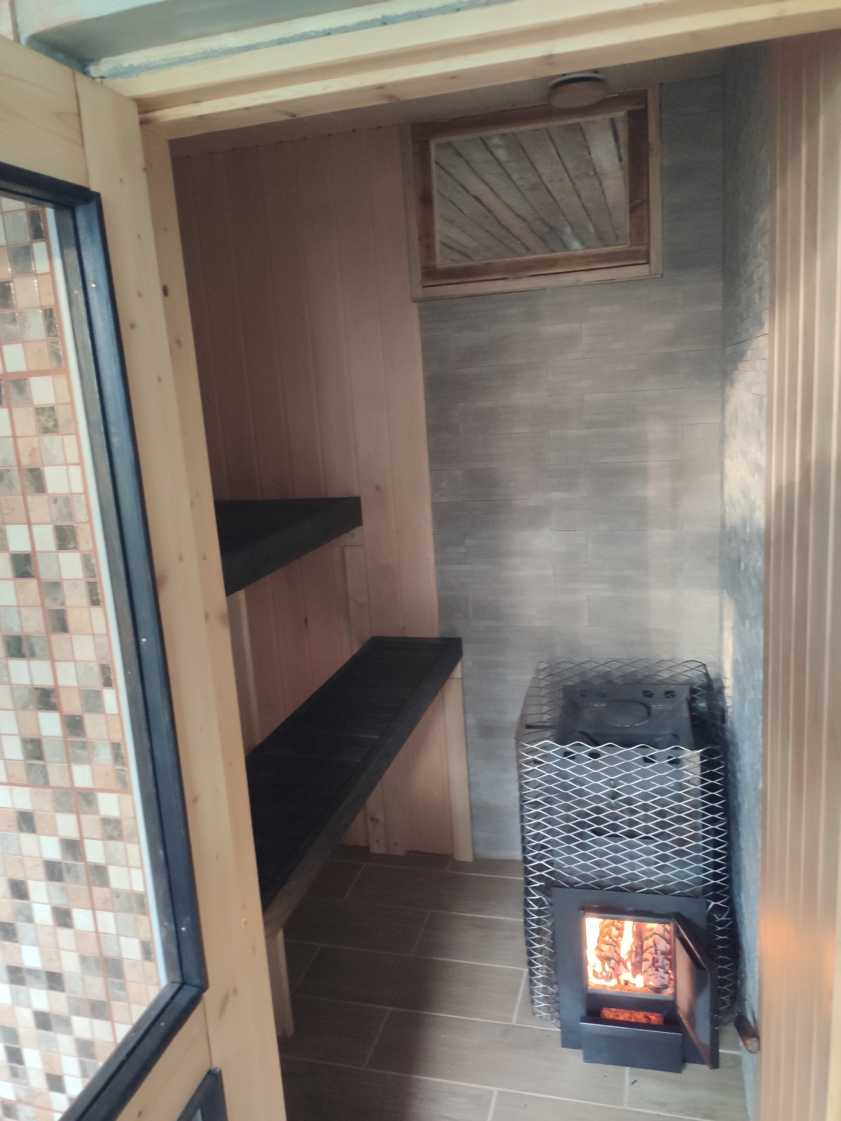 Tegelikult muutsin vist konvektsioonil töötava "mõnede kuumade kividega plekk-bursuika" pigem kiirgusel ja kivimassil (kivi on nüüd ca 150kg) toimivaks. Tundub algsest parem, aga kuna ka leiliruum ise muutus päris palju (suurus, ukse, kerise ja lava paigutus), ei saa päris 1:1 võrrelda ja kerist ennast kiita.