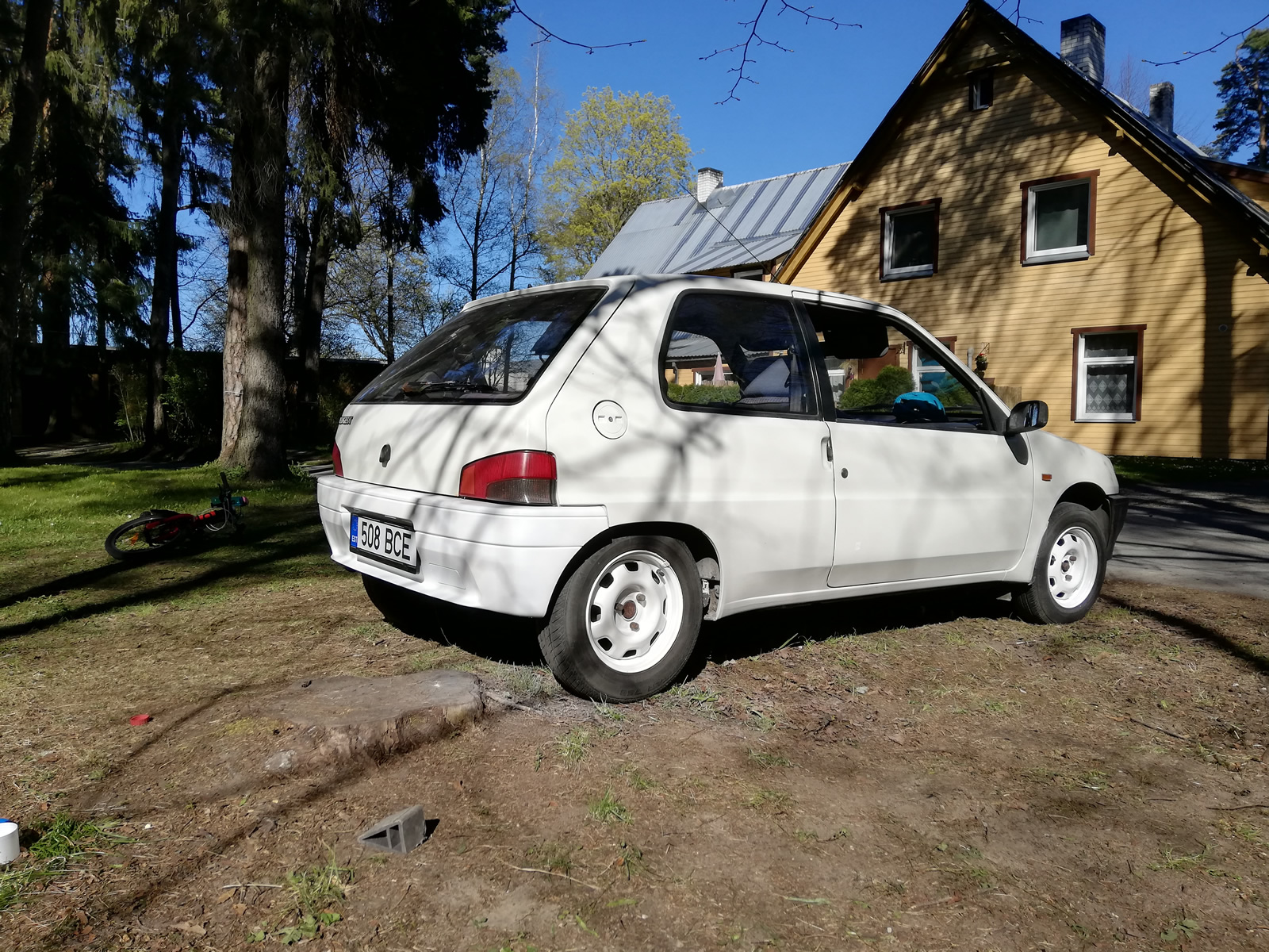 Kuna nüüd oli majaesine täitsa tühi, siis tuli asuda tegutsema. Kammisin läbi nii Soovi, Okidoki, Kuldsebörsi ja Auto24, aga midagi põnevat silma ei jäänud. 5. mai hommikul jäi silm pidama ühel väikesel valgel putukal. Hind oli mõistlik, auto asus Tallinnas ning autol oli just tehtud pikk ülevaatus. Auto oli olnud ühe vanuri käsutuses, kes oma vanuse tõttu polnud viimased 8 aastat autoga liiklusse jõudnud. Kuna auto välimusega väga naistes lööki pole, siis polnud autole ka väga palju huvilisi. Minule ta omapärase kujuga sobis ja nii saigi auto koju toodud.