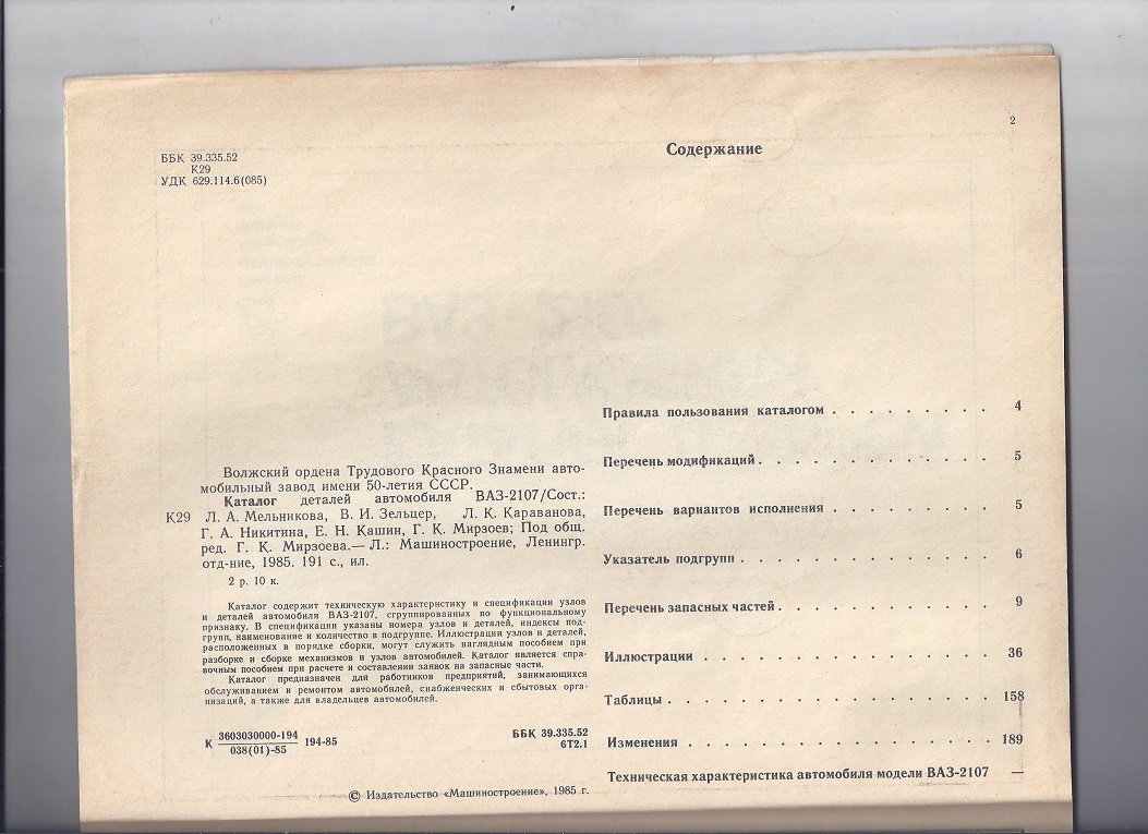 Antud 1985. aasta kataloog on parim infoallikas, antud VAZ 2107 - 1984 osiste kohta. Kõik lahti seletatud. Must valgel.
