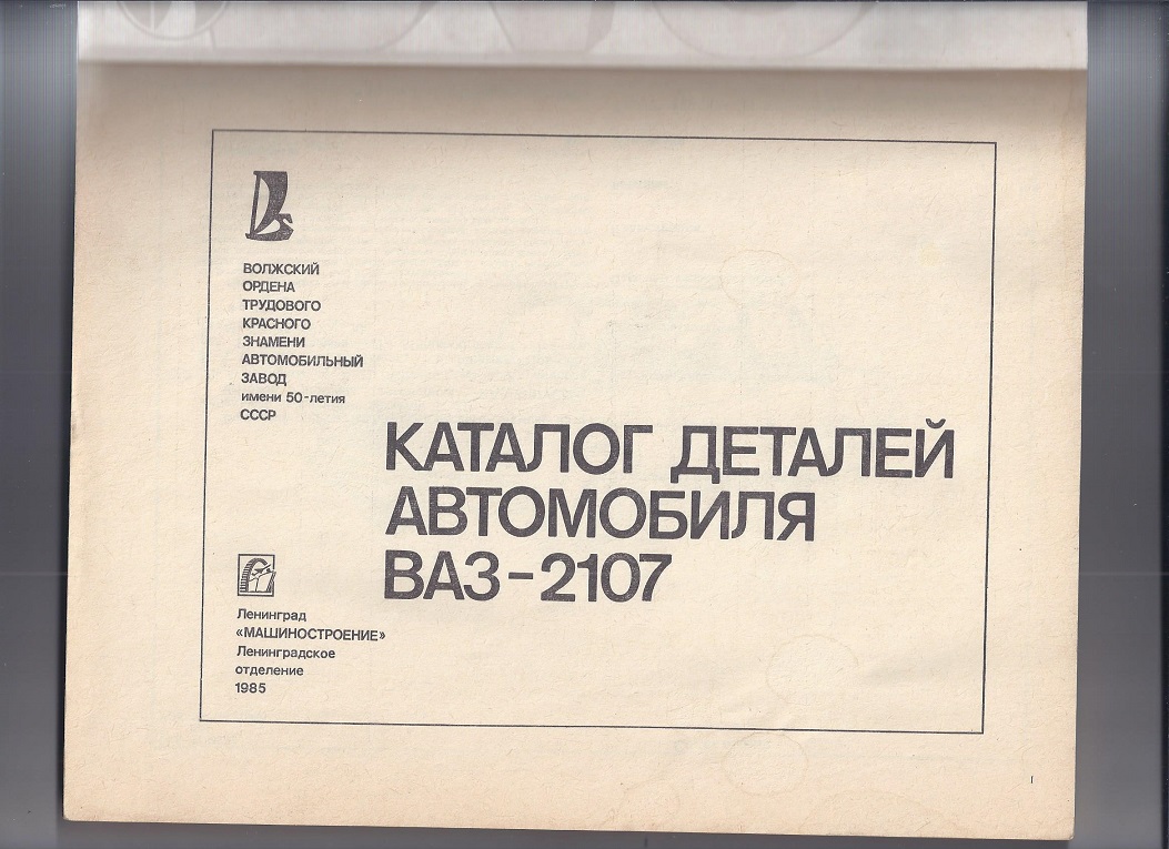 Antud 1985. aasta kataloog on parim infoallikas, antud VAZ 2107 - 1984 osiste kohta. Kõik lahti seletatud. Must valgel.