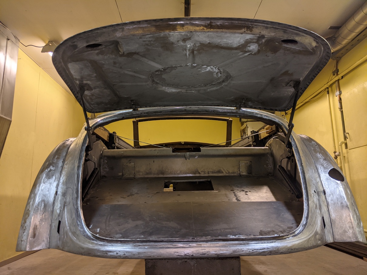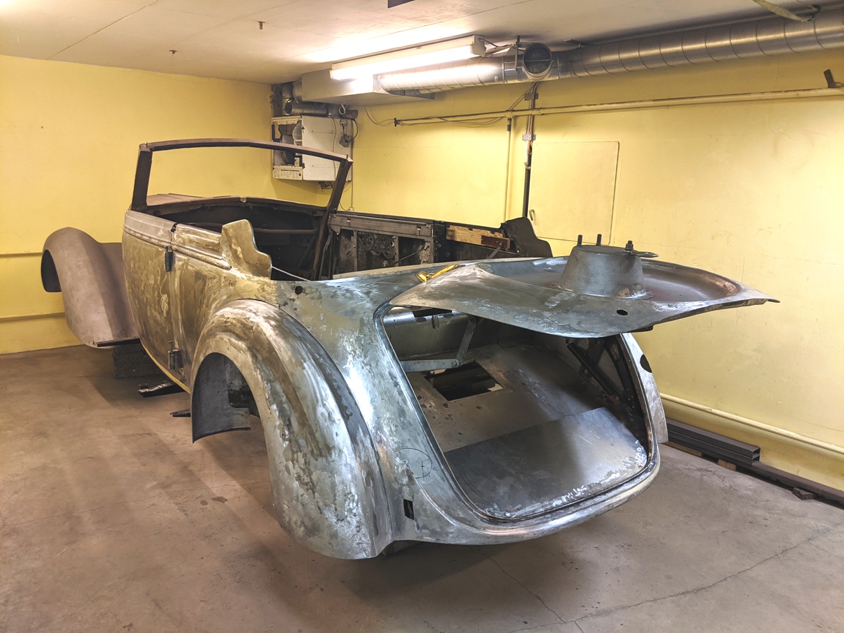 Pleki- ja tinatööd on selleks kevadeks lõpetatud. Kuna auto esi- ja tagaosa on eraldiseisvad, siis teeme tagaosale värviettevalmistuse ning jätkame sügisel esiosa plekitöödega. Suvel tegutseme keldri asemel õues ning aktiivne töö selle autoga jätkub pärast sügisest pööripäeva. Kui hästi läheb, siis on maaler selleks ajaks oma töödega valmis saanud.
