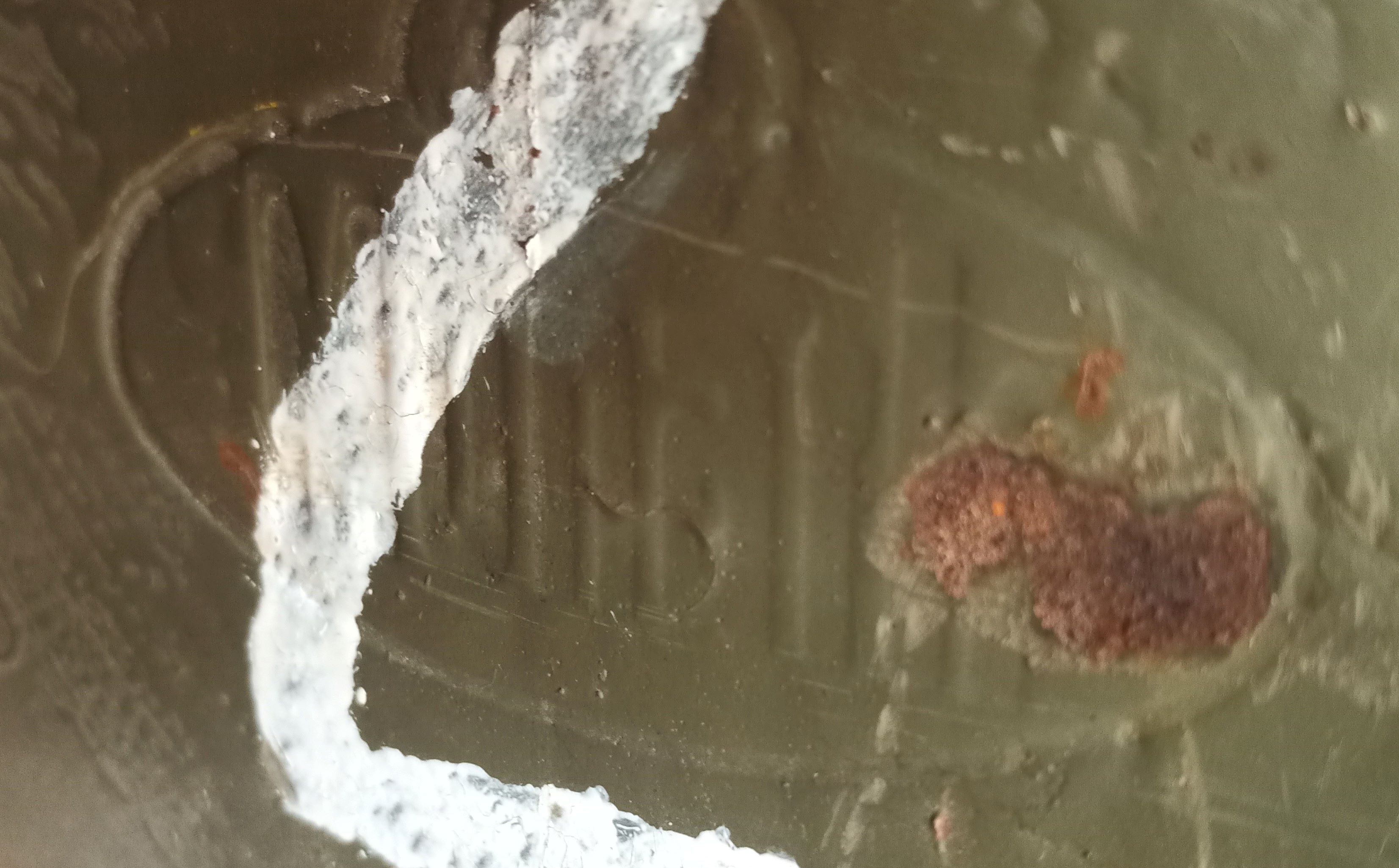 Tagarummu peale on keritud roheline teip, tundub tehasest juba selline lahendus. Ei hakka teipi eemaldama, kuigi selle alt võiks ehk mingi info välja tulla.
