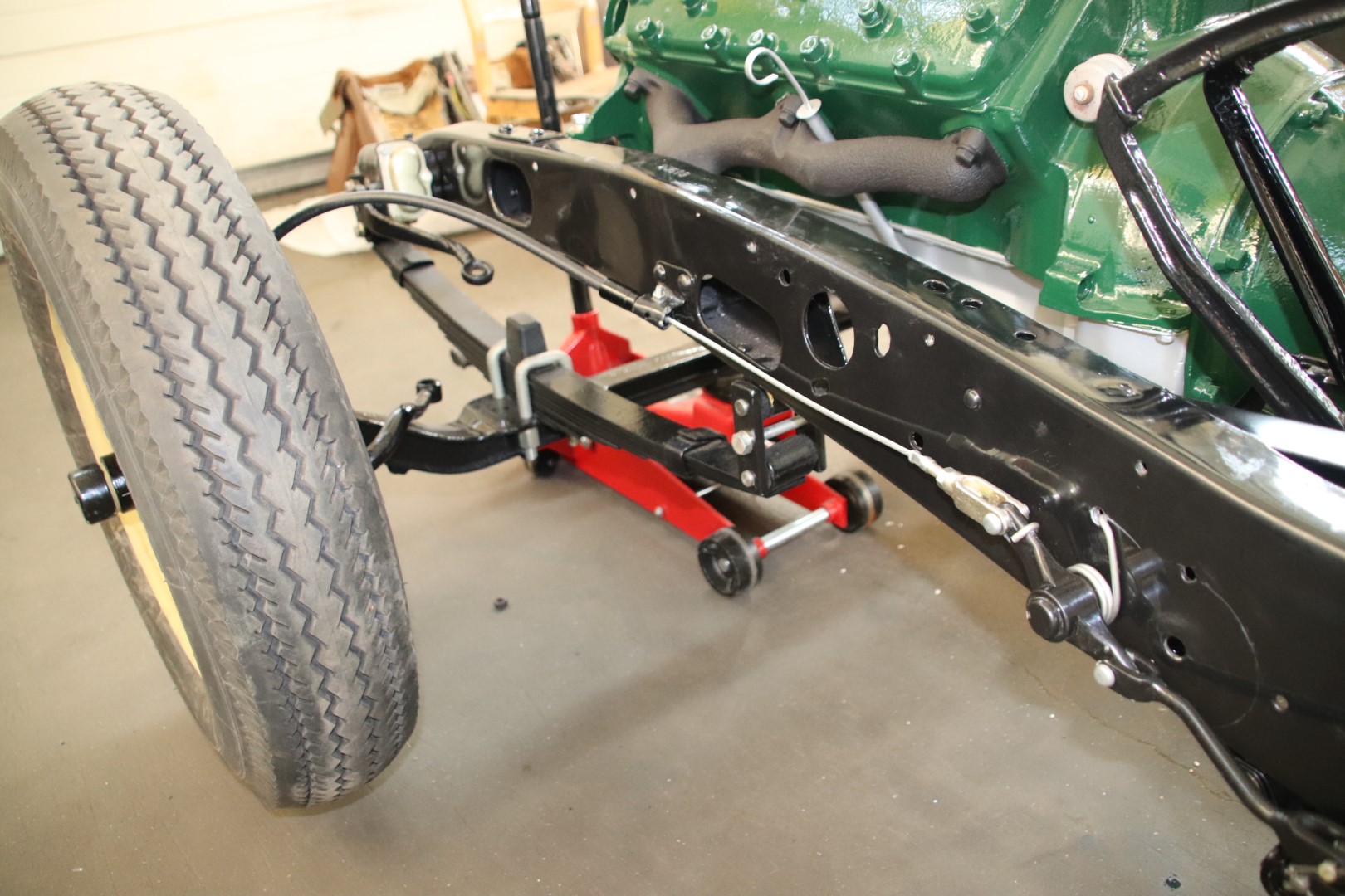 Hea, et on olemas ka originaalne M1V8 raam. Piduri süsteemi ehitamisel ei olnud võimalik piduri pea võlli panna sinna, kus ta asus tava mootori puhul. Teisel raamil olid need avad teise koha peal ja pea murdmise koht jäi olemata. Ümber ehitada tuli kogu hoovastik, seda ainult seoses muutunud pikkustega. Käsi pidurist oli juba juttu. Muuseas erinevalt GAZ A-st, millel on käsipiduri jaoks eraldi hoovastik ja eraldi trummel ja klotsid, on GAZ M1 käsipidur ühendatud pea piduri võlliga ja toimib samaselt jalgpiduriga. Eks leiti kokkuhoiu koht. Seoses pidurivõlli asukoha muutusega tuli ümber ehitada ka pedaalilt tulev hoovastik. Sama kehtib ka siduri võlli kohta, sest mootor ju hoopis teine.