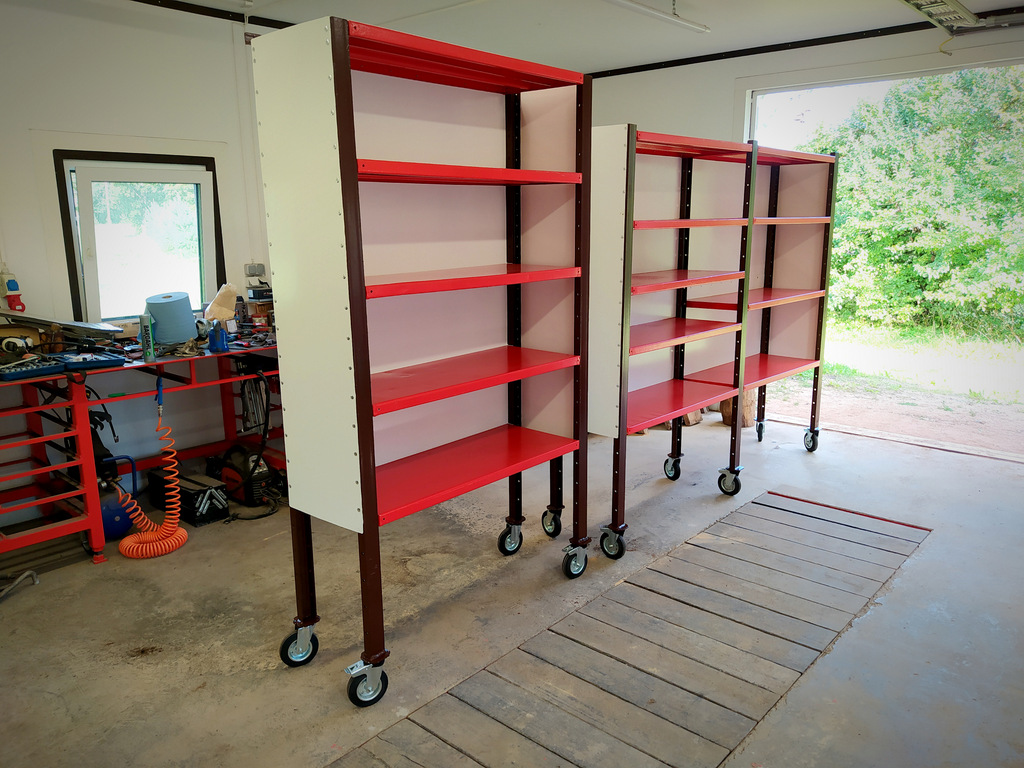 Ja kuskile tuleb veel lisada riiuleid, milles hoida auto varuosi või sellesama auto küljest pärit juppe, kui peaks minema suuremaks remondiks ja tarvis maha võetud detaile kuskile ajutiselt ladustada.