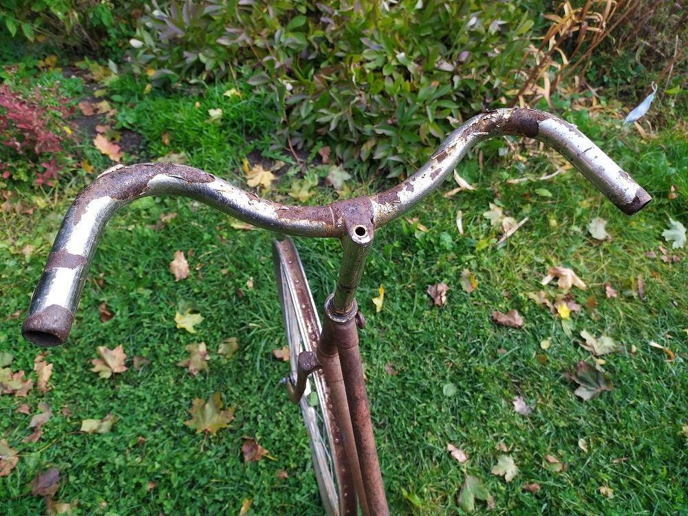 Jäi minu ahnete sõrmede vahele üks kaunis lillepostament.  Raaminumber on tal 95607 ja asub see raamikaelal, otse märgi kohal. Märgi aukude vahe on 69mm, märk ise aga kõige kaduva teed läinud. Raami alumise sirge toru peal on veel jupike mingit pilti säilinud. Oli teist juba ka kõvasti vene juppidega järgi aidatud. Küljes olid venelase poritiivad ja all Riga jooksud. Ka sadul tundub teisest muinasjutust. Ketiratas läinud. Kuskilt ühtegi "made in" kirja leida pole suutnud.