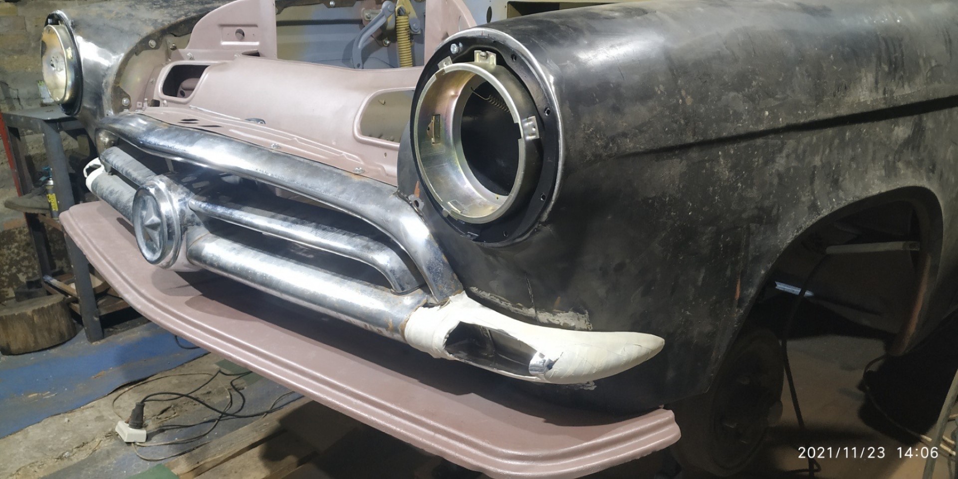 (27-10-2021, 18:19 PM)Formika Kirjutas: Tasapisi hakkab 1957 a kapoti hingede kinnitus ka ilmet võtma. Ega kui kapoti korralikult käima saame siis võibki kere töödele joone alla tõmmata. Enne värvitöid tuleb veel kogu kroom ja tuled külge sobitada ning peale Uut Aastat auto maalritele anda.