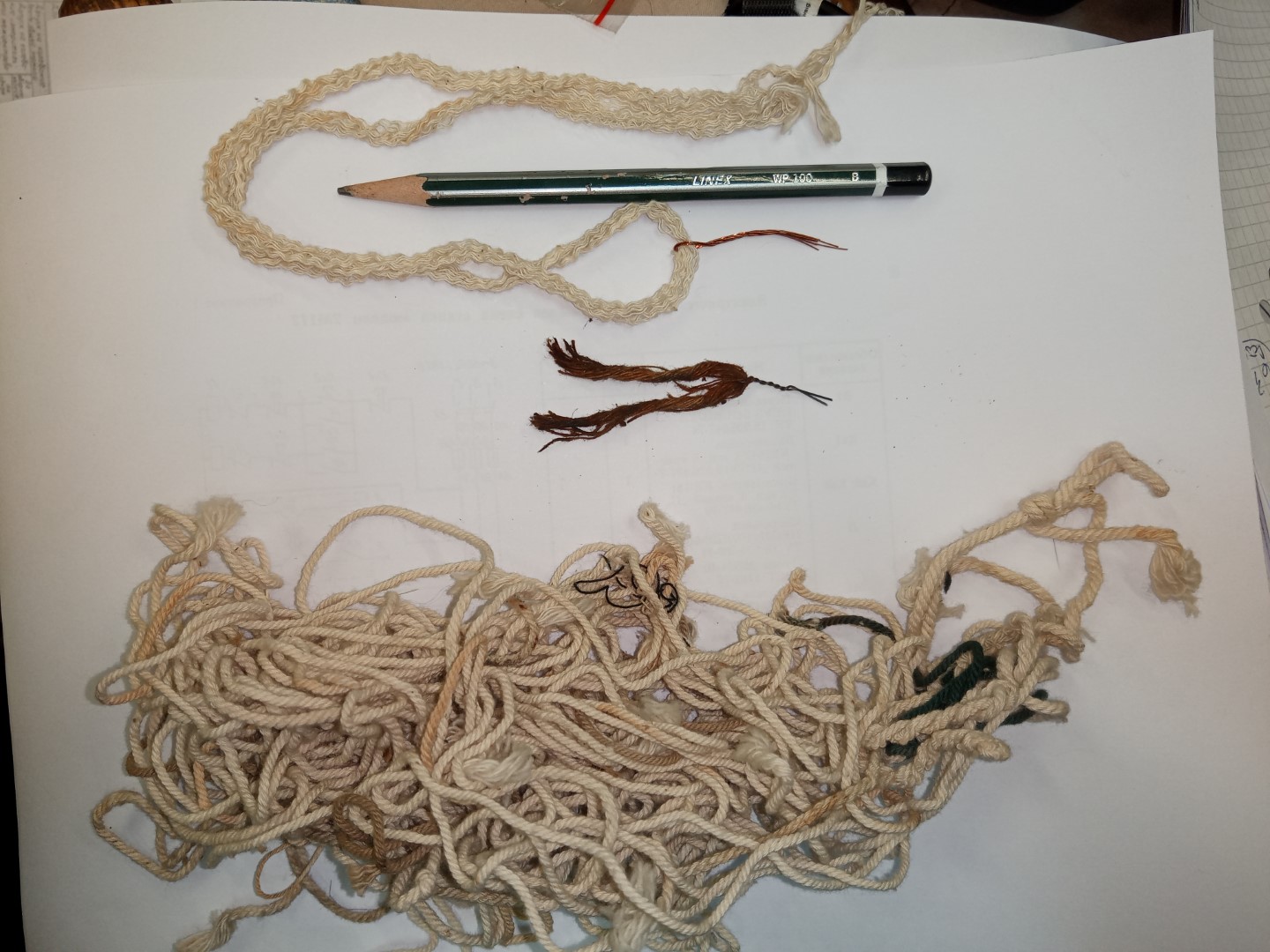 Minul kasutatav tahimajandus. Paraja läbimõõduga puuvillanöör ja jupp traati.
