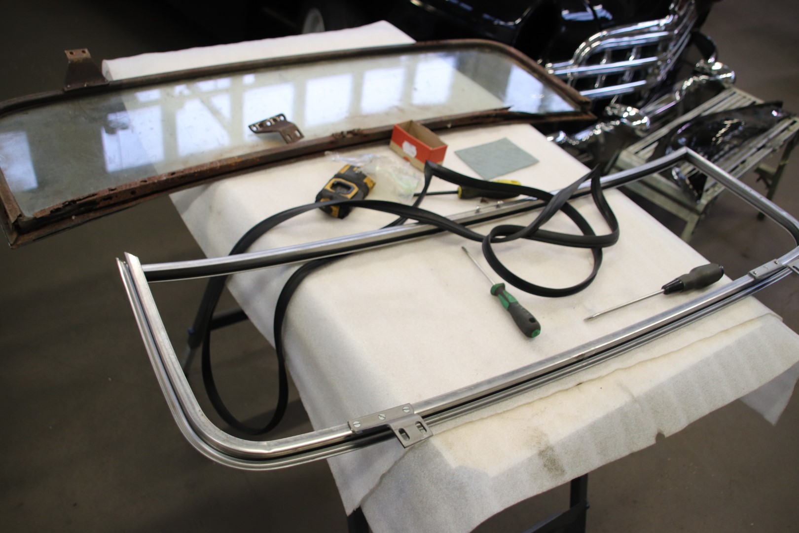 Mõni pilt ka esiklaasi ülaääre vaakum klaasipuhastite katte plekist, mis on kaetud veel originaalse riidega ja mõni pilt ka üldvaates.